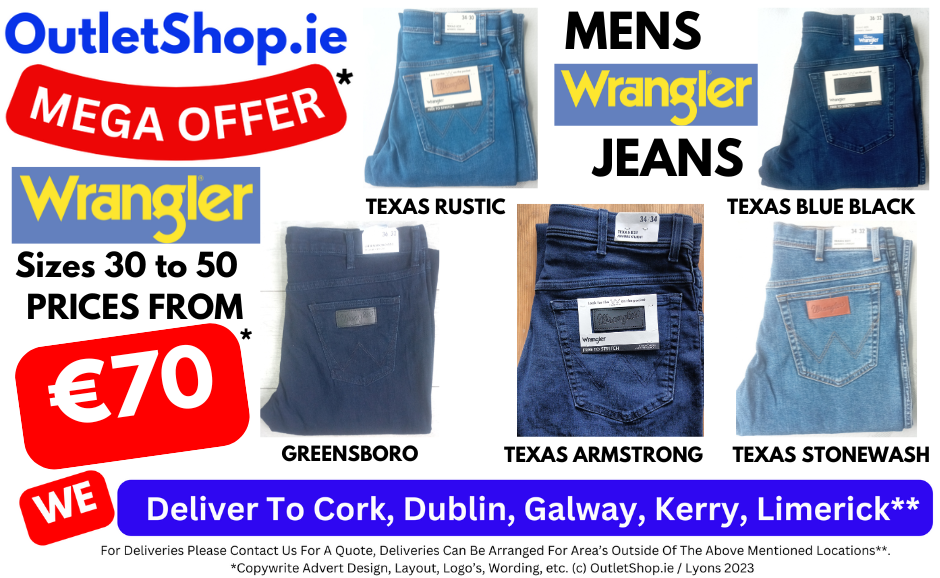Just Arrived, Latest designs from Wrangler, in a full range of Sizes from 30 waist to 50 waist. Texas Armstrong & Rustic In Free to Stretch, Texas Blue Black, The Ever Popular Texas Stonewash Origional, Texas Black Stretch & Greensboro.